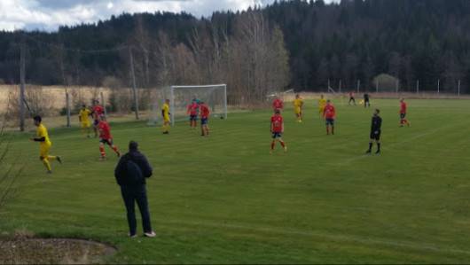 Mysig fotbollsplan mitt i naturen.
