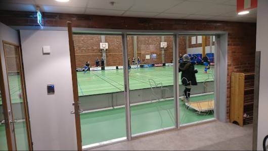 Golvet i hallen är sådär. Storleken på hallen är för liten för innebandy, för nära ribbstolarna. Omklädningsrum mycket bra och enkelt låsbara. Bra kiosk.