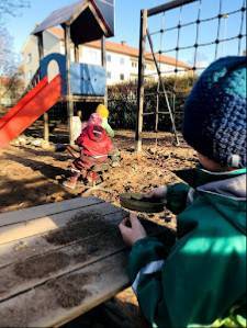 Miljö: Ett inrett rum som främjar utforskande och lek.